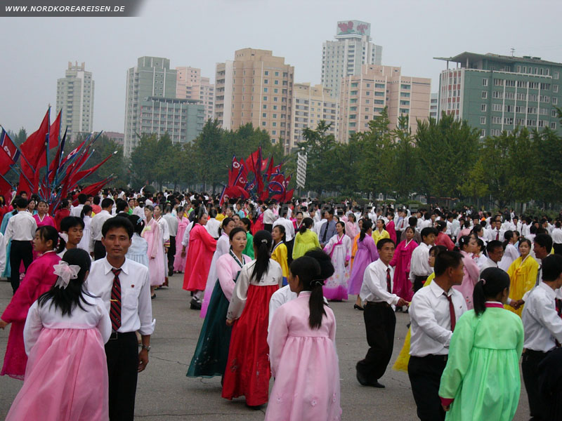 Eine gute Möglichkeit sich der koreanischen Bevölkerung zu nähern, ist eine Reise zum Zeitpunkt eines Nationalfeiertages. Die eindrucksvollen Staatsfeiern zu "runden Geburtstagen" sind mit Massengymnastik und Paraden in der Welt einzigartig und bleiben unvergesslich.