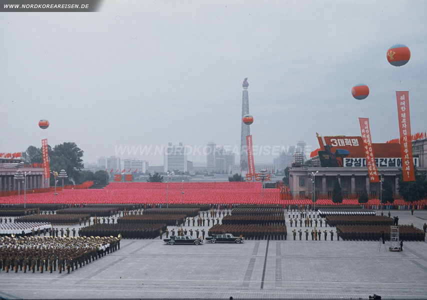 Eine gute Möglichkeit sich der koreanischen Bevölkerung zu nähern, ist eine Reise zum Zeitpunkt eines Nationalfeiertages. Die eindrucksvollen Staatsfeiern zu "runden Geburtstagen" sind mit Massengymnastik und Paraden in der Welt einzigartig und bleiben unvergesslich.